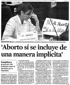 Si la realidad actual es que 7 de cada diez mujeres viven o han vivido situaciones de violencia en alguna etapa de su vida… Si 6 de cada 10 niños y niñas son maltratados por sus padres o madres, por sus familiares o maestros… Si 3 de cada 10 niños, niñas o adolescentes son abusados sexualmente. Son 32 los artículos de los derechos civiles aprobados, todos en igualdad de importancia e interrelacionados entre sí. Sin embargo los partidos social cristiano, prian, sociedad patriótica y los grupos provida se oponen a los Derechos Sexuales y los Derechos reproductivos.