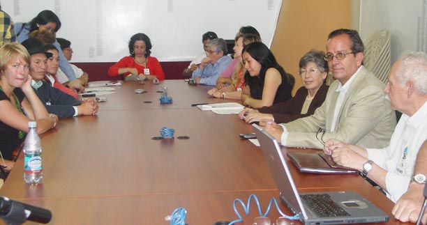 Ec. Alberto Acosta, Presidente de la Asamblea Nacional Constituyente, junto a los miembros de la Comisión de Auditoría Integral del Crédito Público (CAIC), y el Grupo Nacional de Deuda que presentaron sus propuestas en Ciudad Alfaro, el pasado 21 de febrero.